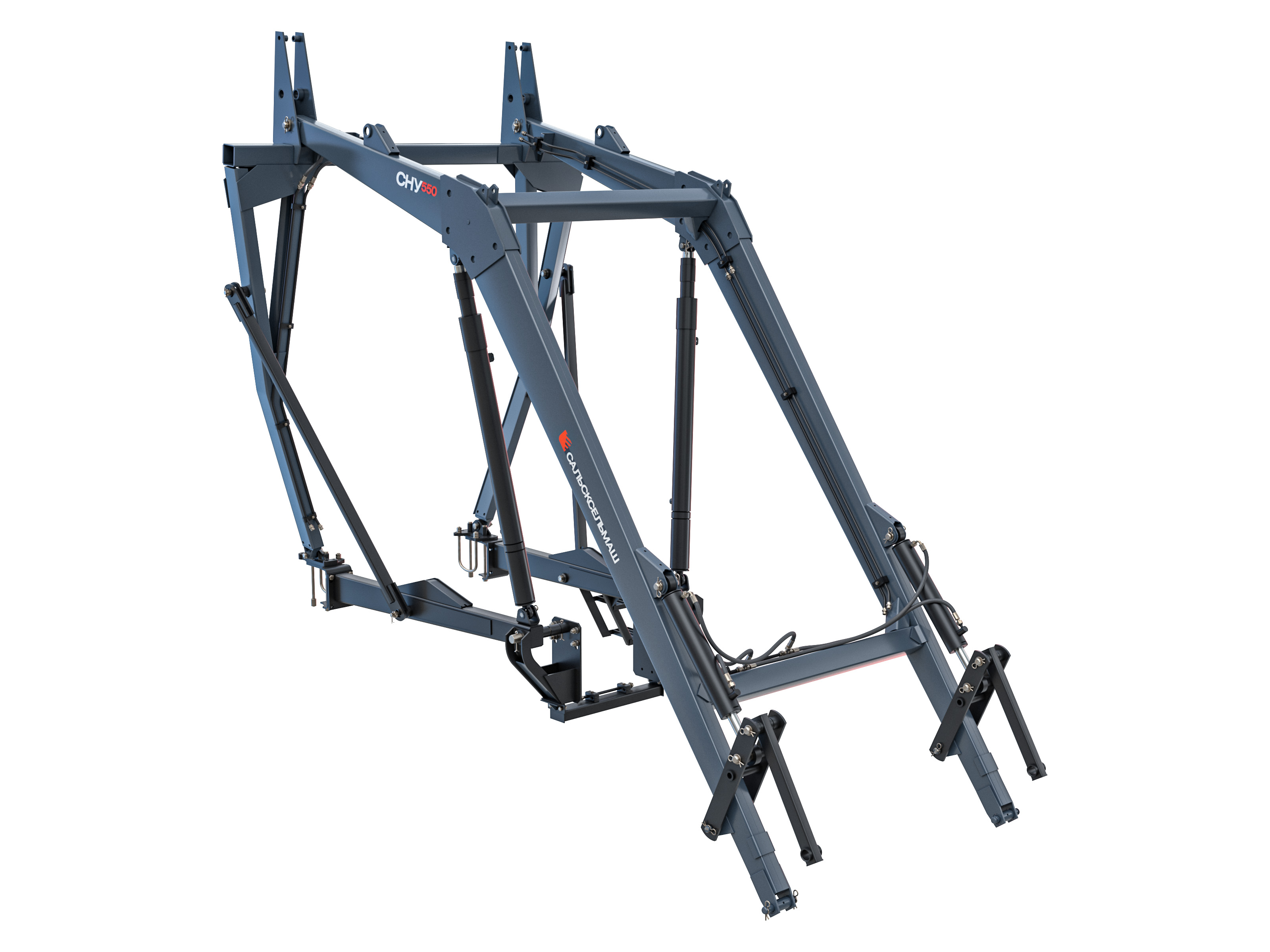 Универсальный навесной стогометатель-погрузчик СНУ-550/800 предназначен для погрузки различных сельскохозяйственных грузов: сена, соломы, силоса, навоза, минеральных удобрений, песка в транспортные средства, смесительные установки и машины для внесения удобрений, для перевозки и укладки в скирды рулонов и копен сена, соломы. Конструкция сделана из прочного металла, чтобы при погрузке тяжелых материалов стрела погрузчика СНУ-505/800 не погнулась и не нанесла ущерб трактору и близстоящим людям. Монтаж стогометателя-погрузчика СНУ-550/800 осуществляется на раму трактора Беларус и подключается к штатной гидросистеме, что позволяет быстро навесить оборудование, без дополнительных доработок.