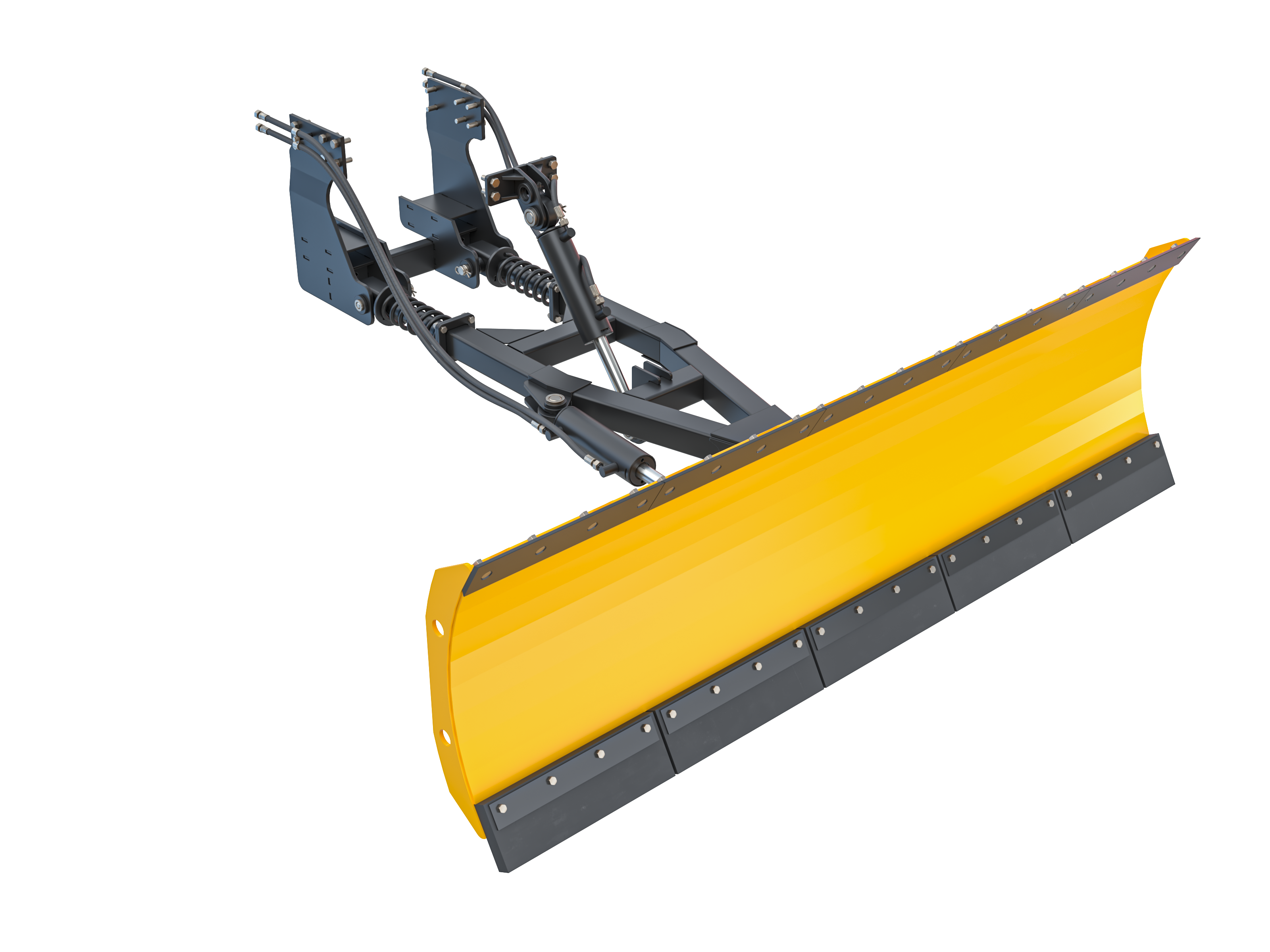 Лопата отвала выполнена из стали толщиной 6 мм и усилена поперечными и продольными швелерами, образующими единую жёсткую конструкцию. Это обеспечивает высокую прочность и долгий срок службы даже при интенсивной эксплуатации. Рабочая ширина отвала 2,5 м позволяет быстро обрабатывать большие площади, что особенно важно при уборке снега в зимний период.