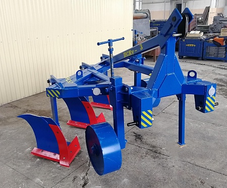Плуг навесной трехкорпусный марки ПСКу-3 (плуг скоростной комбинированный универсальный) предназначен для пахоты под зерновые и технические культуры, на глубину до 30 см почв, не засорённых камнями, плитняком и другими препятствиями.