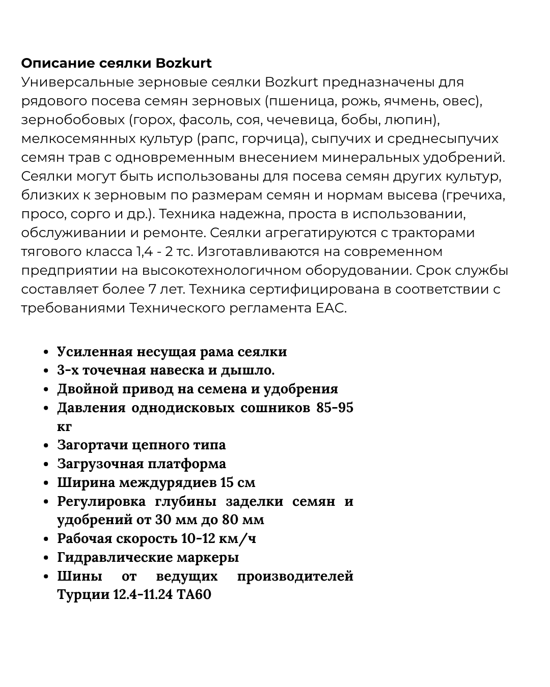 Зернотуковая сеялка BOZKURT ВТМ-36-1-150 (Вариаторная с (без)транспортным устройством)