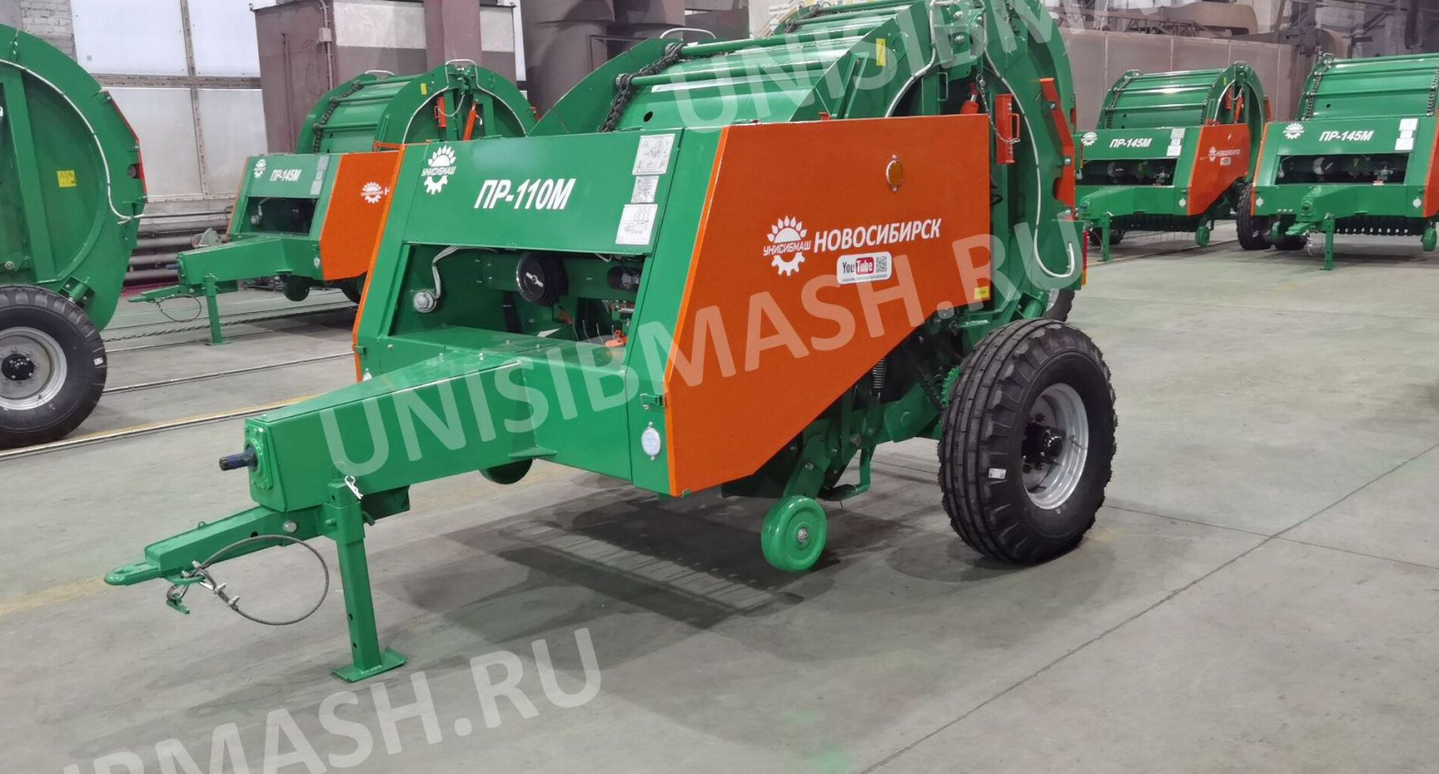 Модель пресс-подборщика ПР-110М - имеет самый удобный размер рулона 1,1*1,2 метра и весом 200 кг, ширина захвата 1,35 метра и обмотка рулона шпагатом на УНИСИБМАШе выпускается с 2018 года.